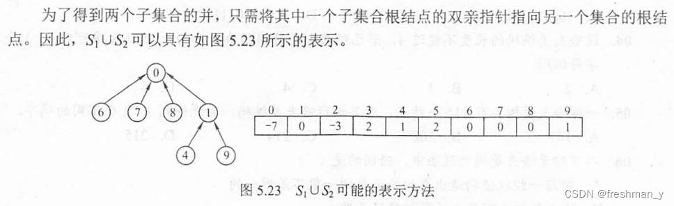 S[Root2]=Root1; //将根Root2连接到另一根Root1下面