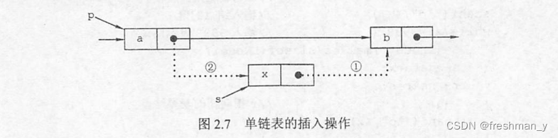 s->next=p->next; //修改指针域,不能颠倒