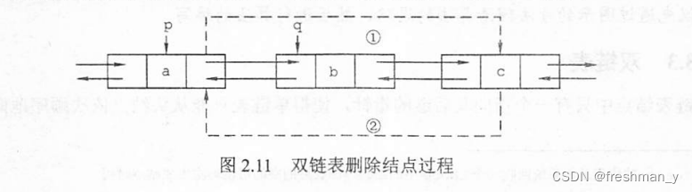 p->next=q->next; //图2.11中步骤①