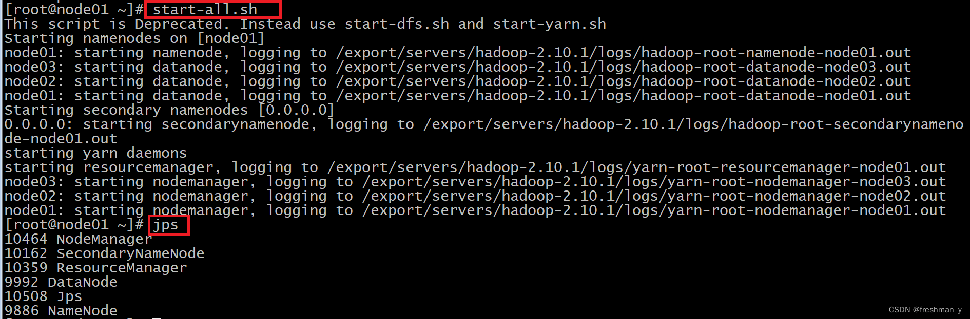 2、接着开启Hadoop的服务。 (命令jps查看是否起开了进程)