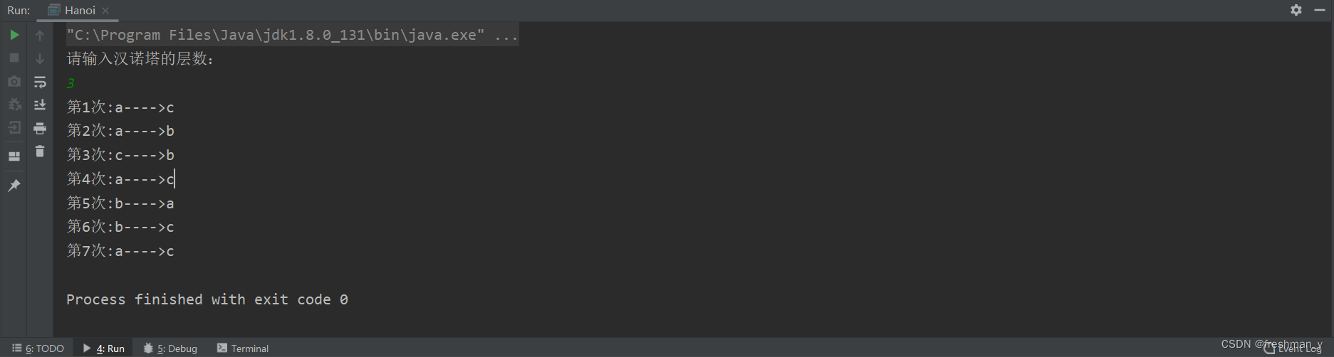 printf("请输入汉诺塔的层数:\n");
