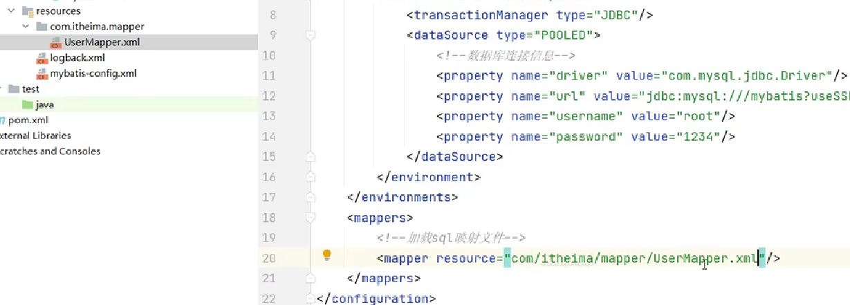 - 创建mybatis主配置文件:mybatis-config.xml,可以从mybatis中文网中直接复制,修改对应的数值(需要连接的是数据库,不是数据库的表)即可。