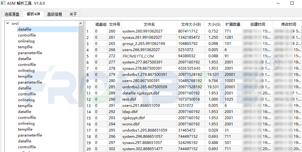 8、完成对NetApp存储的存储结构的分析后,使用北亚企安自主开发的NetApp解析程序提取数据, 解析asm文件系统并提取出数据库文件。