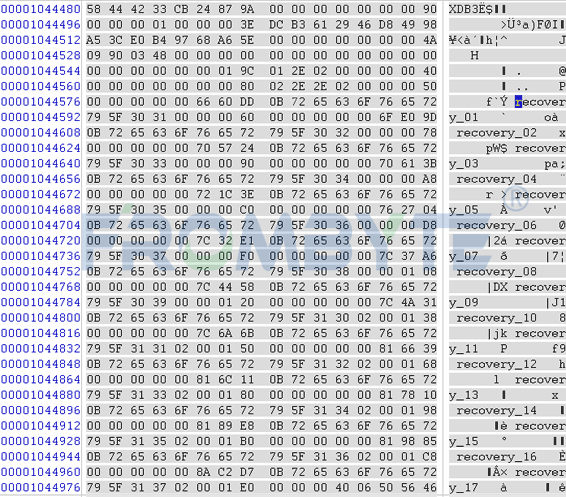 1、将服务器存储中所有磁盘编号后取出,硬件工程师经过检测后没有发现有磁盘存在明显的硬件故障和坏道。数据恢复工程师以只读方式将所有磁盘进行扇区级全盘镜像,镜像完成后按照编号将所有磁盘还原到原服务器存储中。后续的数据分析和数据恢复操作都基于镜像文件进行,避免对原始磁盘数据造成二次破坏。