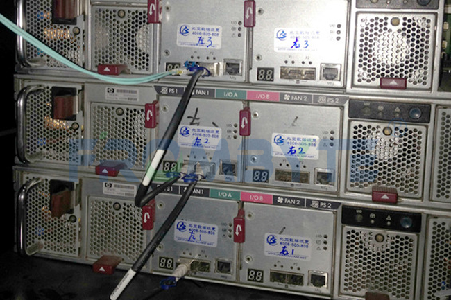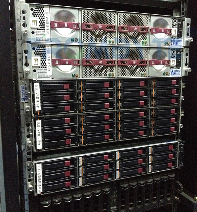 2、对EVA存储中的磁盘做只读镜像。因EVA主机与扩展柜之间多是铜线连接,可能需要在扩展柜上增加光纤收发模块,再通过光链路接入fc hba卡上。也可以把所有硬盘拆下来后,放入其他光纤通道柜中进行镜像。