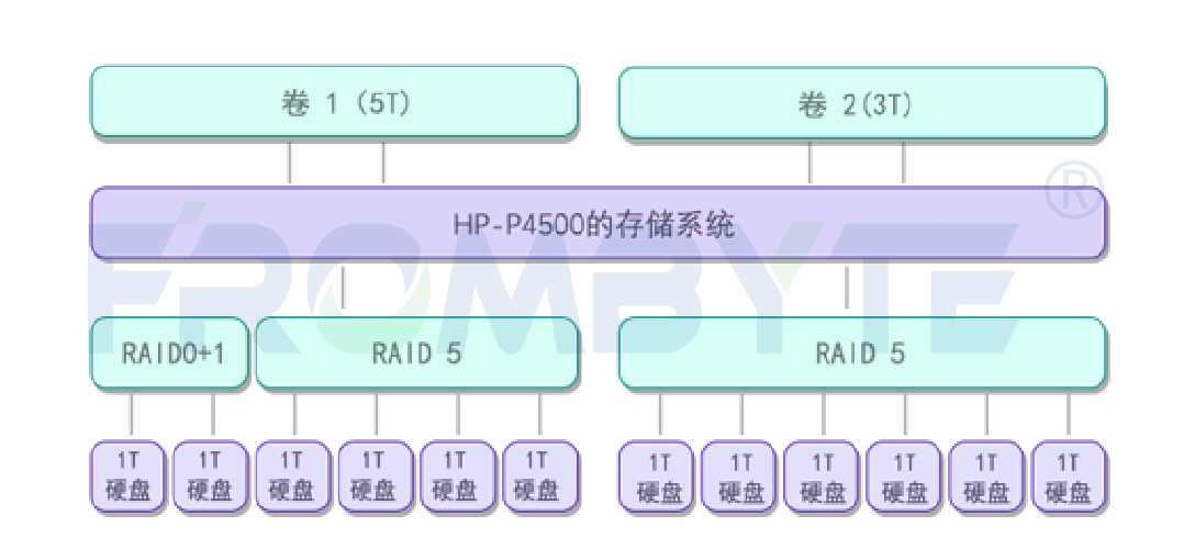 不同逻辑磁盘(raid)的多个不连续的片段组成为卷,用户的数据即存储在这一空间中。LeftHand可以识别的最小单元就是raid,raid5阵列或者raid6阵列(包含校验盘)使用得比较普遍。RAID前面一部分空间用来存储记录这些片段的MAP。