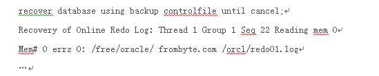 执行恢复命令做介质恢复,直到返回报告,恢复完成。