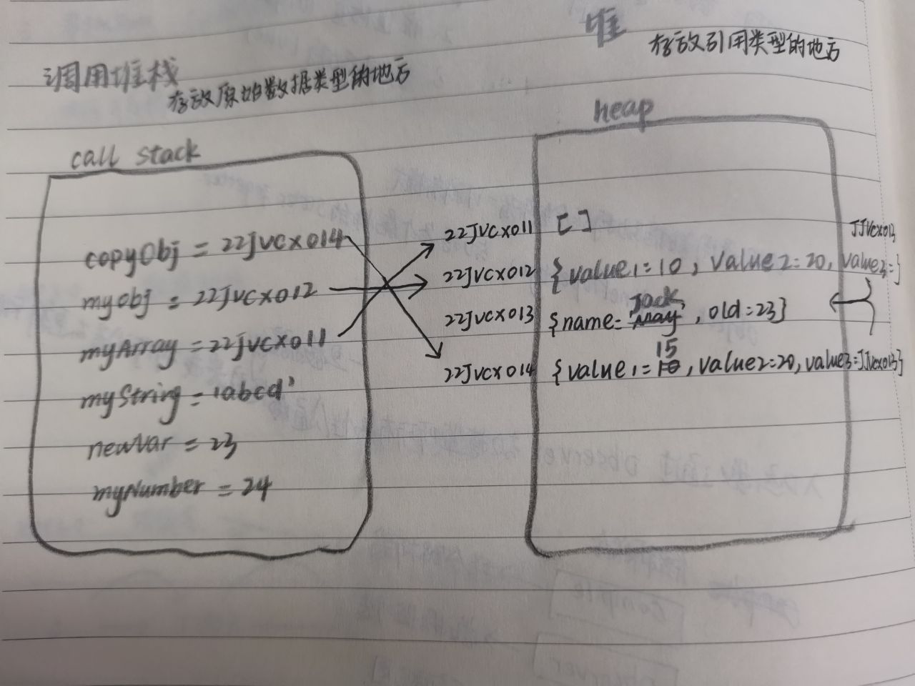 console.log(copyObj); // { value1: 15, value2: 20, value3: { name: 'Jack', old: 23 } }