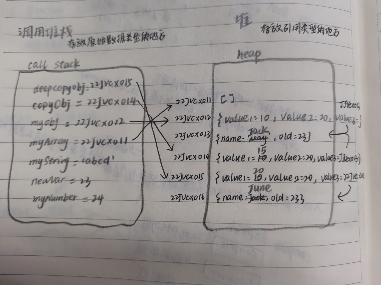 console.log(deepCopyObj); // { value1: 20, value2: 20, value3: { name: 'June', old: 23 } }