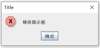 JOptionPane.showMessageDialog(null,"错误提示框","Title",JOptionPane.ERROR_MESSAGE);