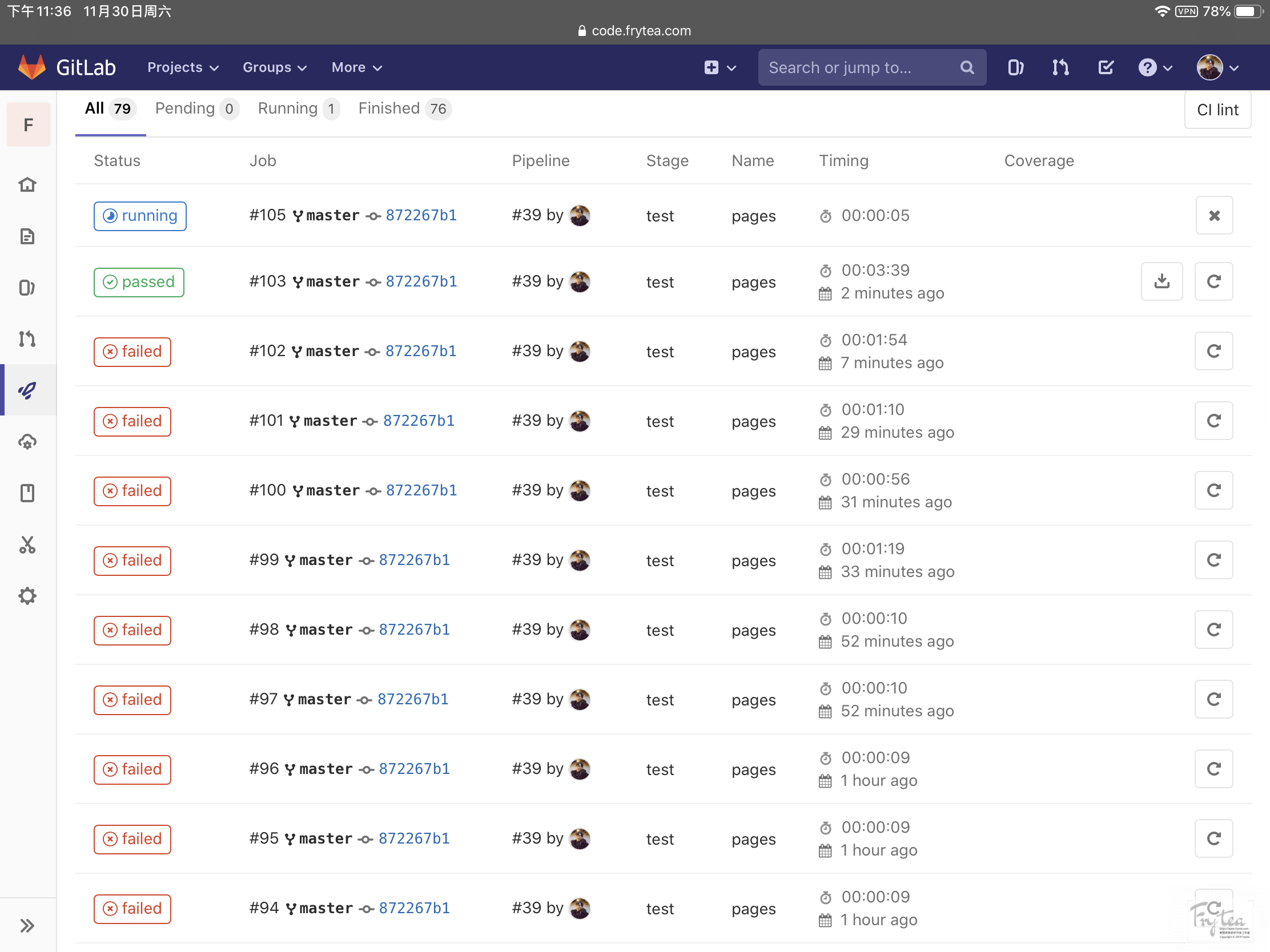 事情是这样子的,我自己搭建了 GitLab ,并导入了我在 GitHub 所有的仓库,并打算未来就在这里提交我的代码了。一方面是因为 GitHub 实在是太慢了,目前使用 iPad 代理切换不智能;另一方面是我想要搭建自己的一套 Git Hosting + CI/CD 系统。搭建过程很顺利、导入过程也十分顺利,但是到了 CI/CD 这里就出了问题,我想要通过 GitLab Runner 编译我的 MKDocs 页面并自动部署到 GitLab Pages,但我被一个错误坑了整整两天: