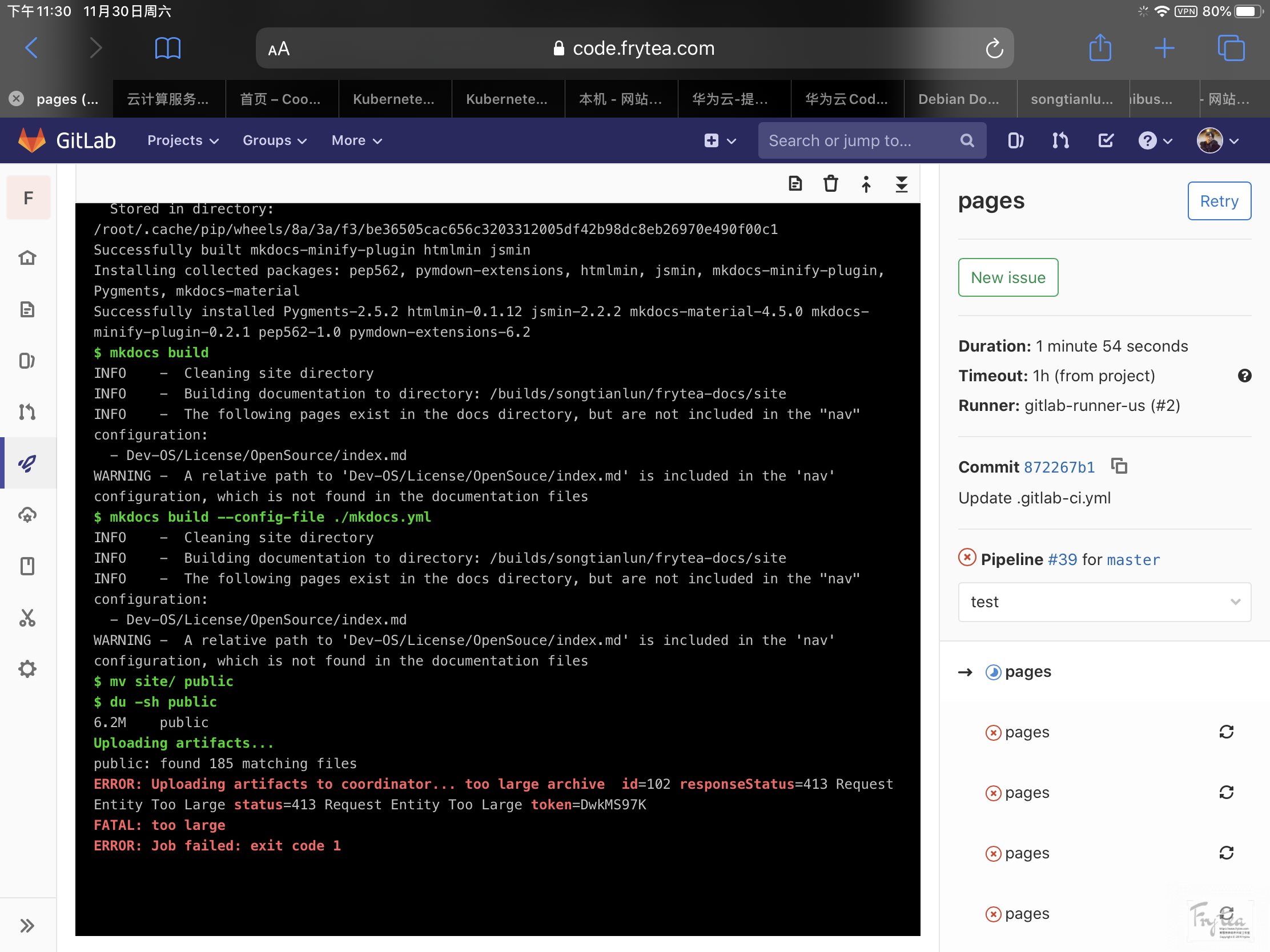 【GitLab CI/CD】记一个脑残问题 `too large archive`