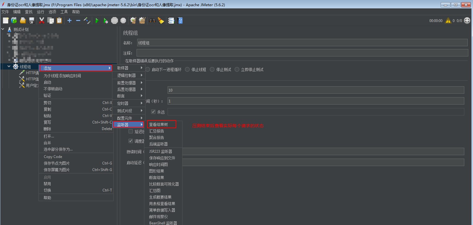 压测结束后 结果是之前的结果树、聚合报告、响应时间图、汇总图等
