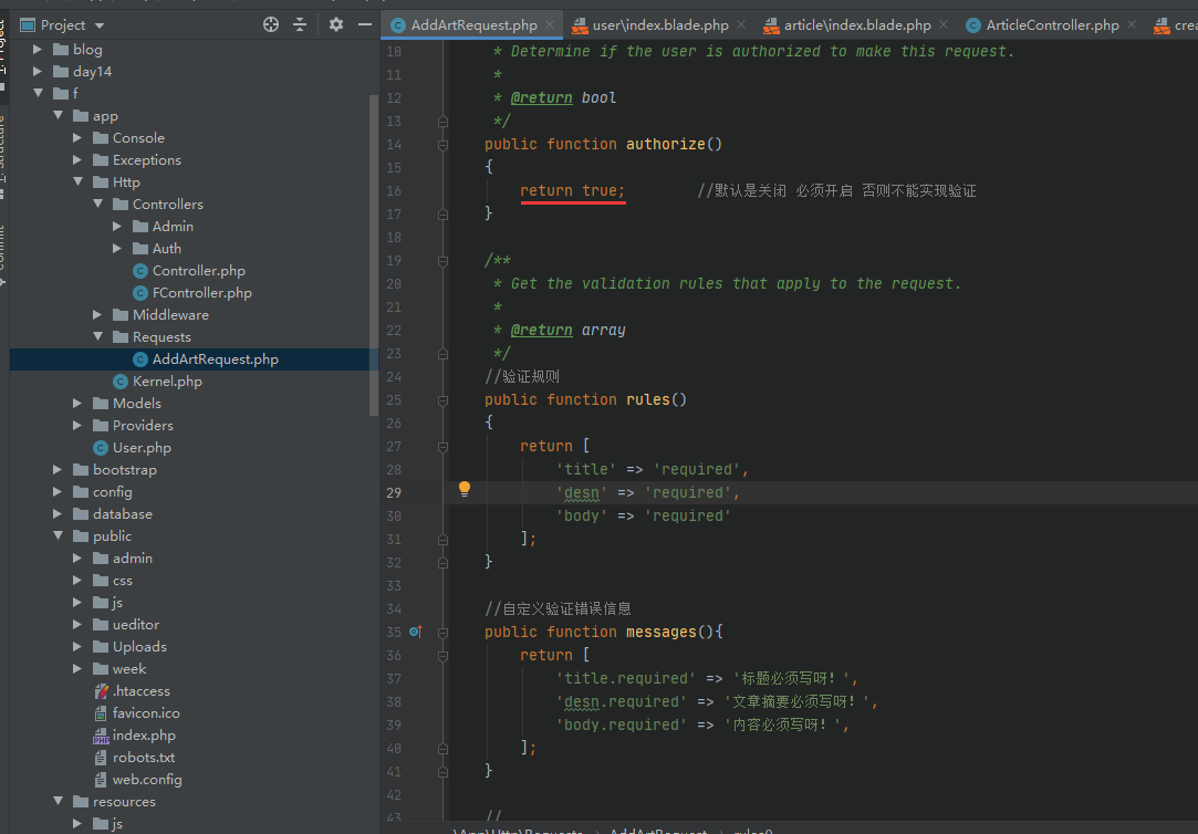 php artisan make:request AddArtRequest