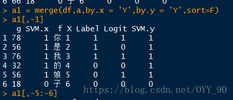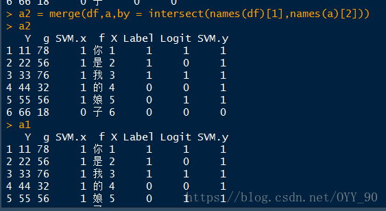 by = intersect(names(x), names(y)) 是获取数据集x,y的列名后,提取其公共列名,作为两个数据集的连接列, 当有多个公共列时,需用下标指出公共列,如names(x)[1],指定x数据集的第1列作为公共列