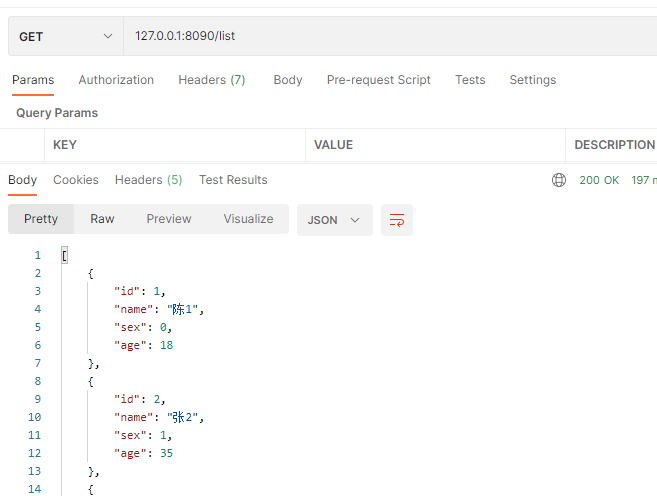 然后正常跑起来,调用一个mysql查询接口,可以看到解析正常,数据库连接正常: