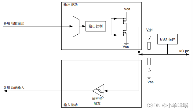 复用开漏输出:可以理解为GPIO口被用作第二功能时的配置情况(即并非作为通用IO口使用)。端口必须配置成复用开漏功能输出模式。