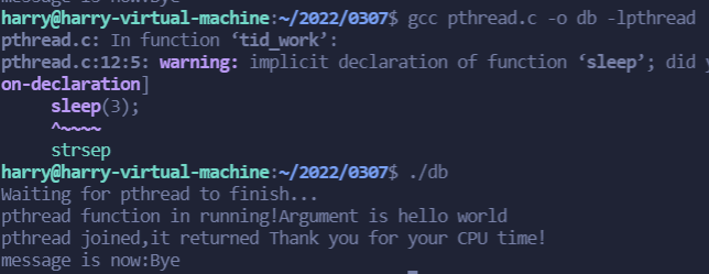 printf("pthread function in running!Argument is %s\n",(char *)arg);