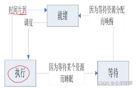 - 进程已具备一切条件,正在等待分配CPU的处理时间片