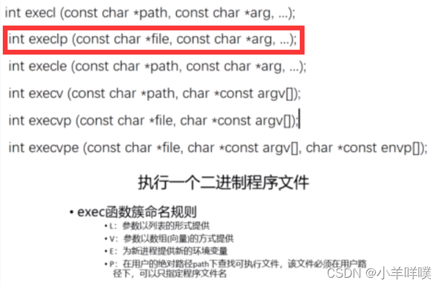 - arg1 – argn: 被执行程序所需的命令行参数,含程序名。以空指针(NULL)结束。