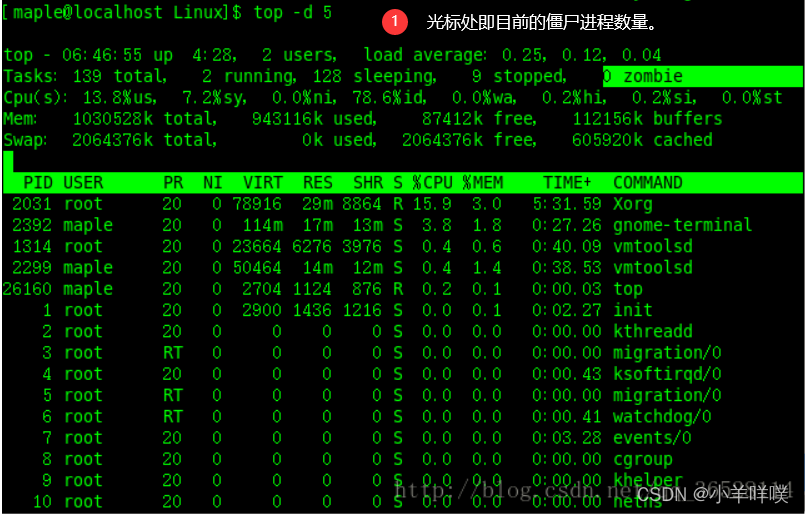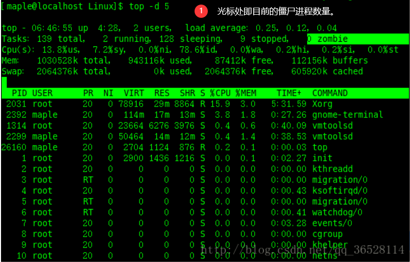 - -d:后面接秒数,表示显示整个进程界面更新的秒数,如top -d 5