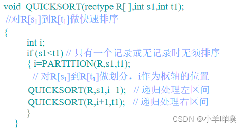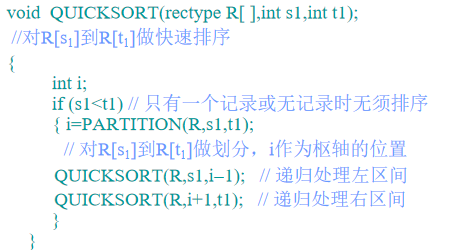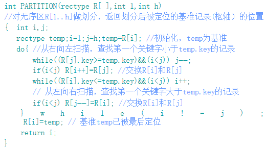 - 右侧子序列中所有记录的关键字都大于枢轴记录的关键字