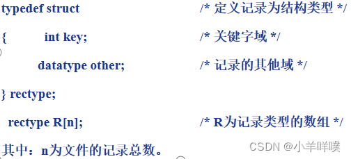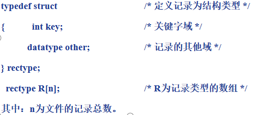 - 以记录数组作为文件的存储结构,关键字为整数,文件类型说明如下