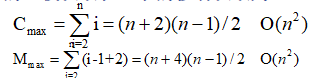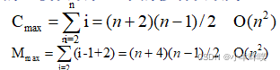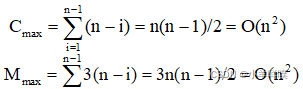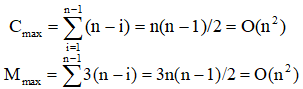 - 若文件按关键字递减有序,则需进行n-1趟排序,比较次数和记录移动次数均为最大值,分别为: