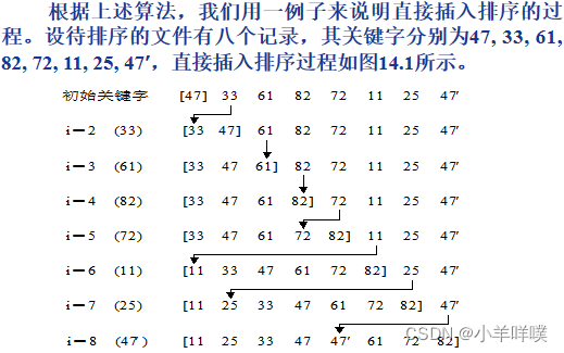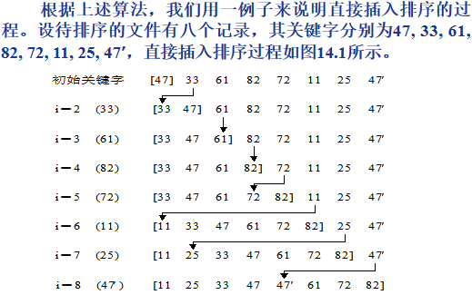 (2)算法采用的是查找比较操作和记录移动操作交替进行的方法 ,具体做法是: