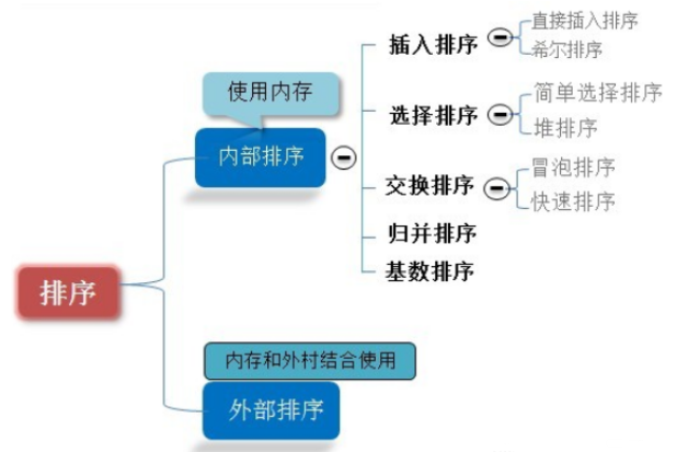 外部排序:使用内存和外存,适于大文件,内存不够用