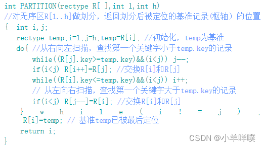 - 左侧子序列中所有记录的关键字都小于或等于枢轴记录的关键字