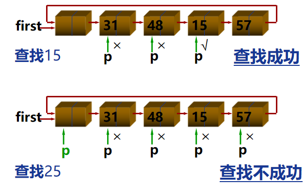 CircListNode * p = first->link; //检测指针 p 指示第一个结点