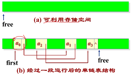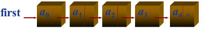 a0| →a1| →——值域|指针域(指针域内放下一结点的地址)→值域|指针域