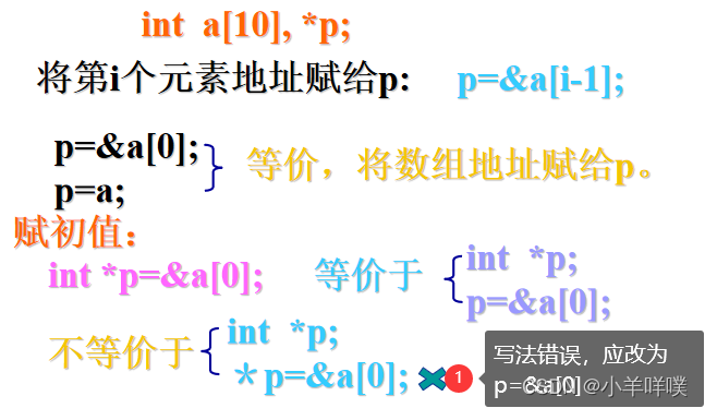 当有:int a[10],*p;