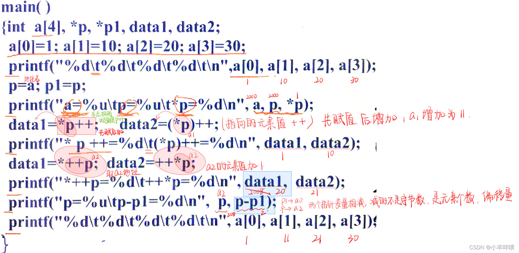 | a[1], *(a+1) | 第1行第0列元素地址 | 2008 |