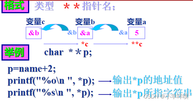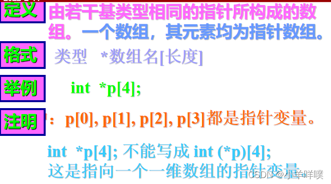 一个变量有地址,数组中包含的若干元素也有地址,指针变量即可指向变量,当然也可指向数组元素和数组。