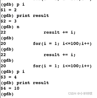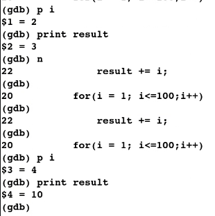 (gdb) n——执行下一条语句,如果该语句为函数调用,不会进入函数内部执行(即不会一步步地调试函数内部语句)