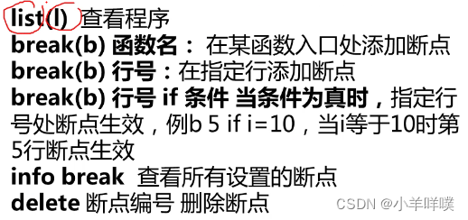 | list(l)函数名:有函数名,从该处开始显示 | |