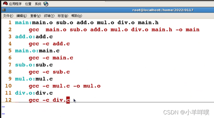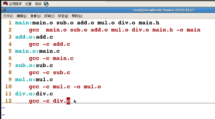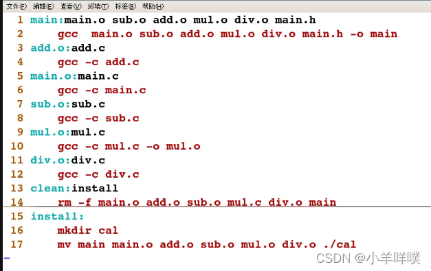 ③创建每个目标体时需要运行的命令(command),这一行必须以制表符(tab键)开头。