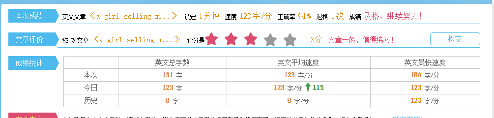 练打字速度推荐金山打字通,下面是我完成的成绩。