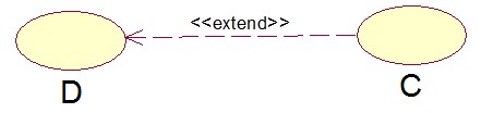表示D被C扩展,D包含新的功能,比如D是查询数据,C可以是打印数据,即用户可以查询但不打印数据,打印数据只是一个扩展功能。