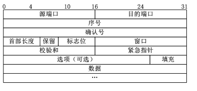 (2)确认序号:Ack序号,占32位,只有ACK标志位为1时,确认序号字段才有效,Ack=Seq+1。