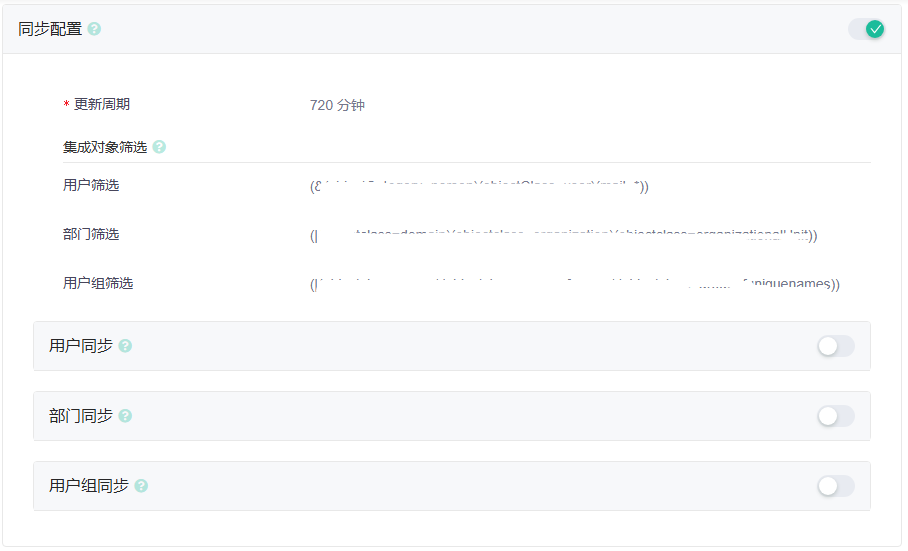 按组织单元(OU)或用户组精细化同步:例如仅同步ftrans.cn域的全部账户,或ftrans.cn域下的研发部,避免数据冗余;也可以自由搭配,同步研发部+销售部。