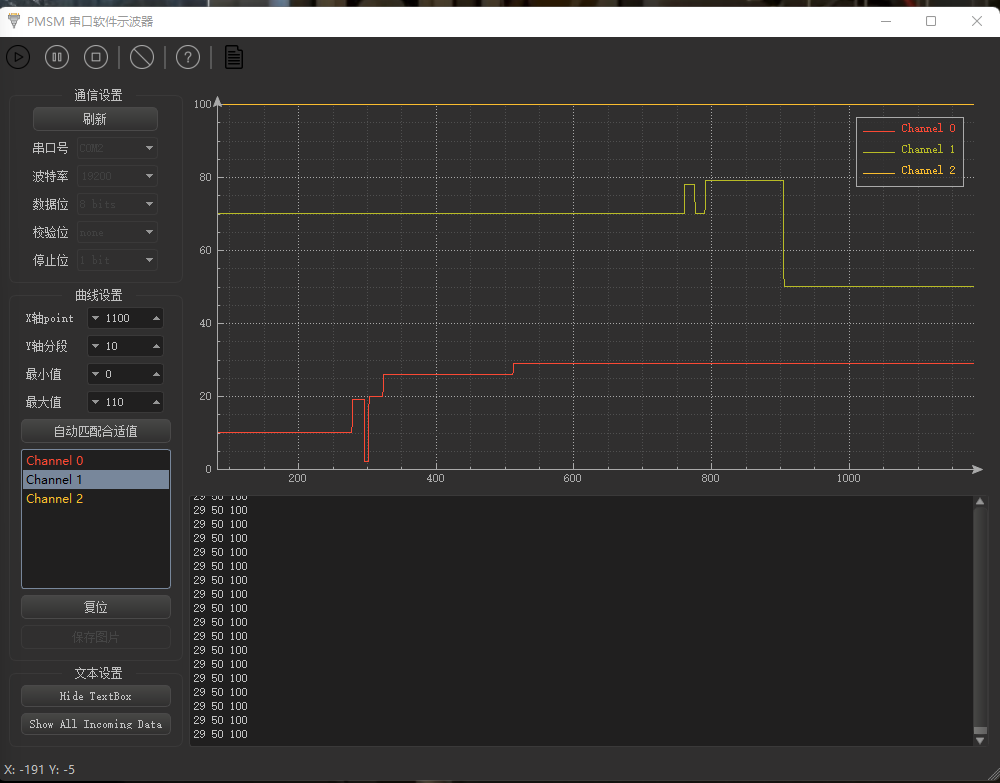demo为使用QT开发的一个软件示波器,功能为可以将串口接收到的数据实时渲染成曲线显示、