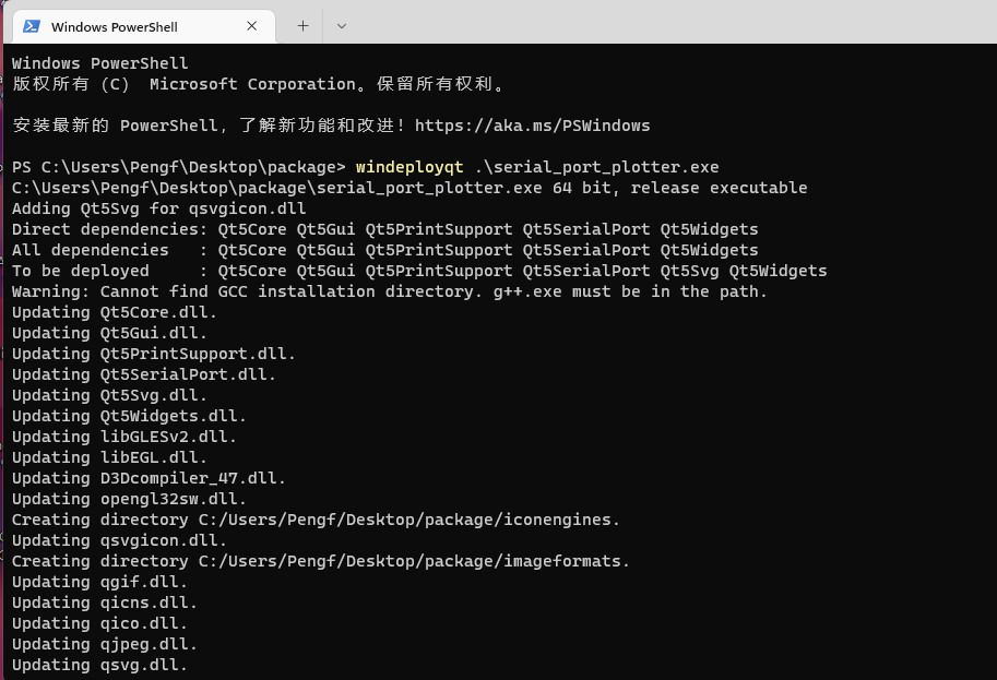 输入指令windeployqt .\serial_port_plotter.exe