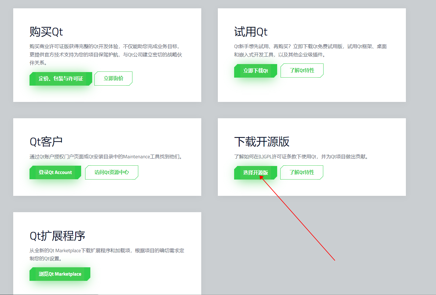 最新版QT需要在线安装,点击下方链接,选择下载开源版。获取Qt —— 立即下载