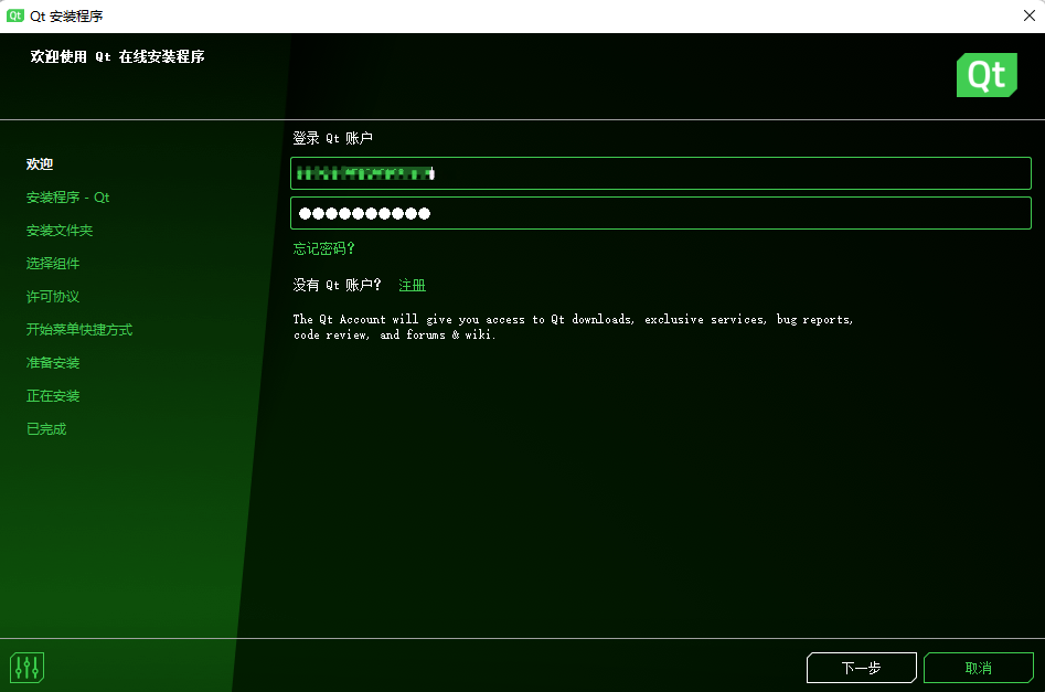 浏览器会自动下载.exe应用,点击启动,输入你的QT账号密码,点击下一步