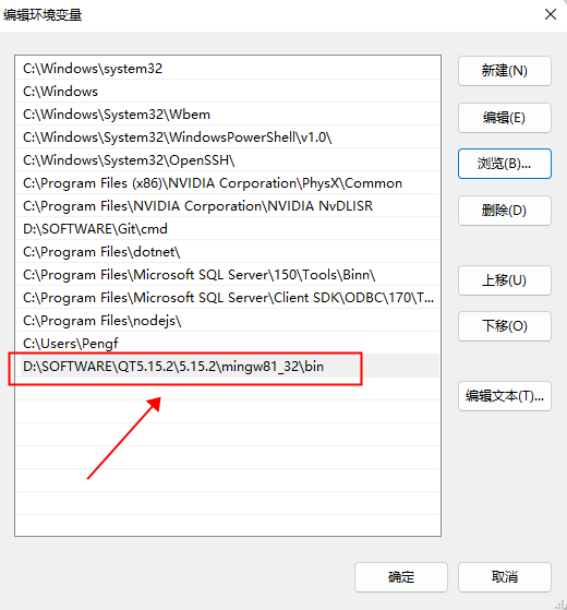 1、设置环境变量,目录为安装QT的的磁盘下,找到mingw81_32\bin文件夹(项目使用MinGW编译器)