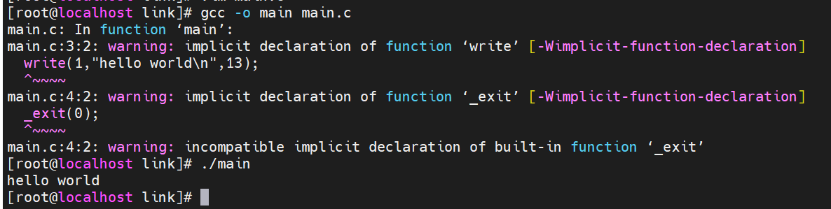 write(1, "hello world\n", 13);
