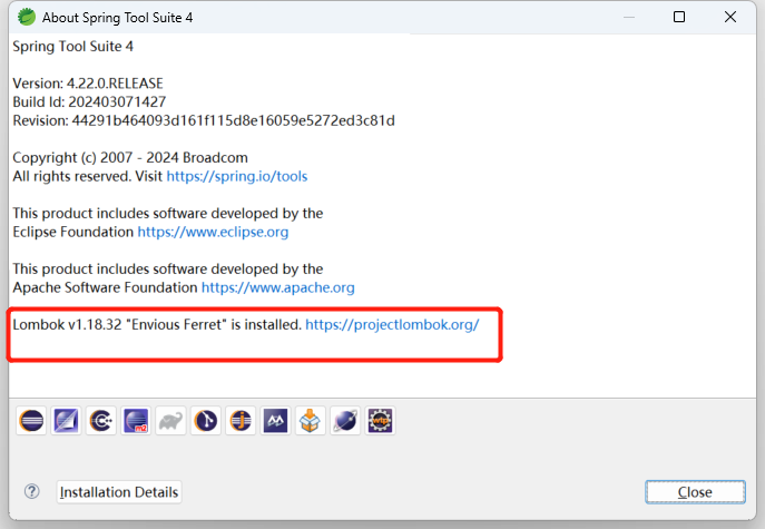 则点击 Specify location… 按钮,为 Lombok 指定 STS 所在的位置,然后点击 Install / Update 按钮